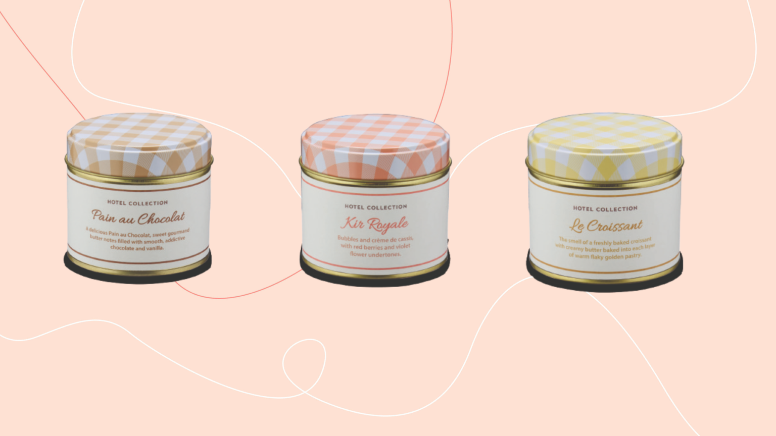 The Hotel Collection Parisian Candles draws inspiration from free classic French patisserie treats. Choose from Le Croissant, Pain Au Chocolat and Kir Royale – three classic cafe choices, with each offering a slightly different scent experience.